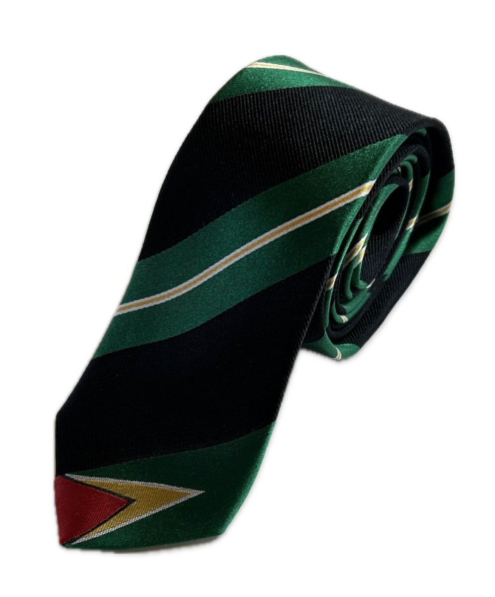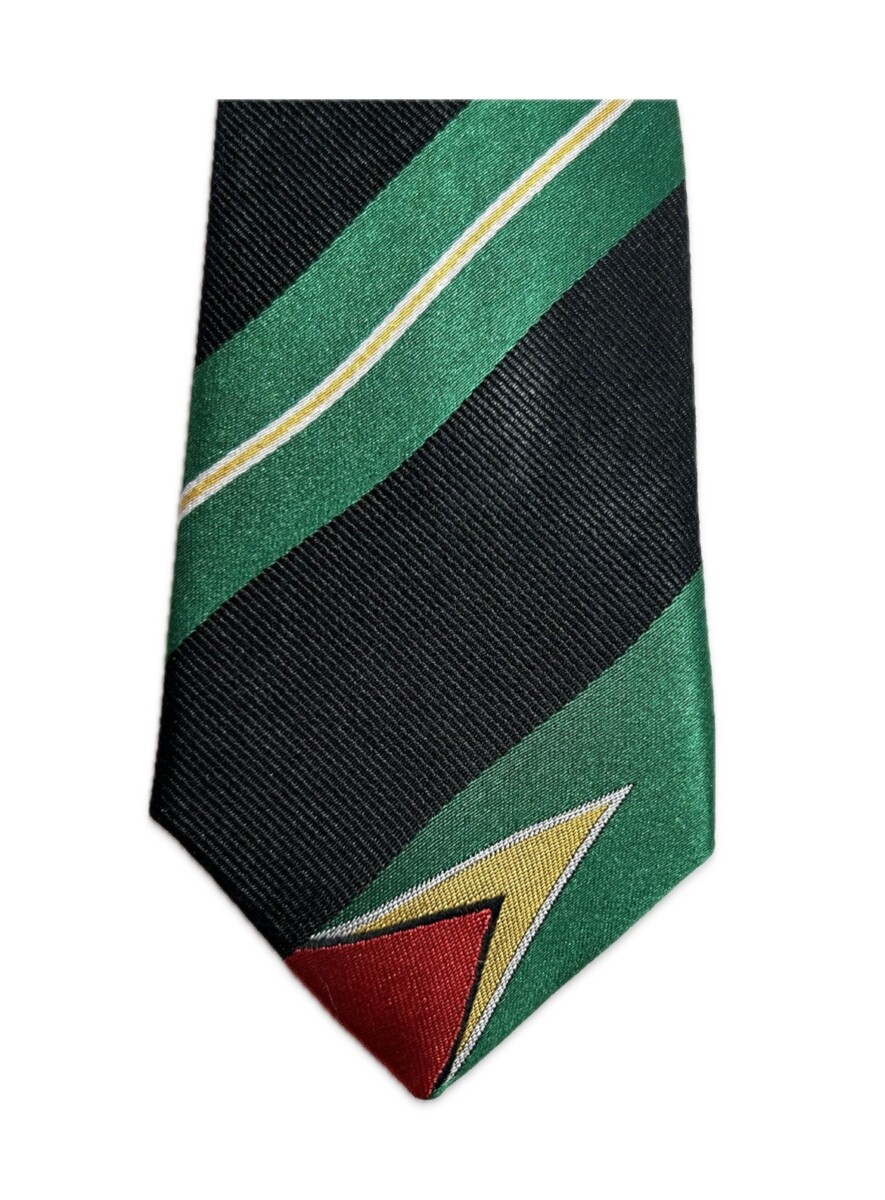 Statesman Ties Guyana Skinny Tie was designed to represent the Guyana Flag. The bottom stripe of the flag incorporates the flag.
